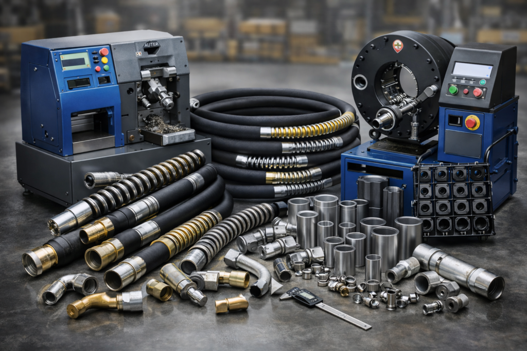 (Hose Hydrolic, Spring Guard, Ferrule, Fitting, Mesin Skivving, dan Mesin Crimmping)